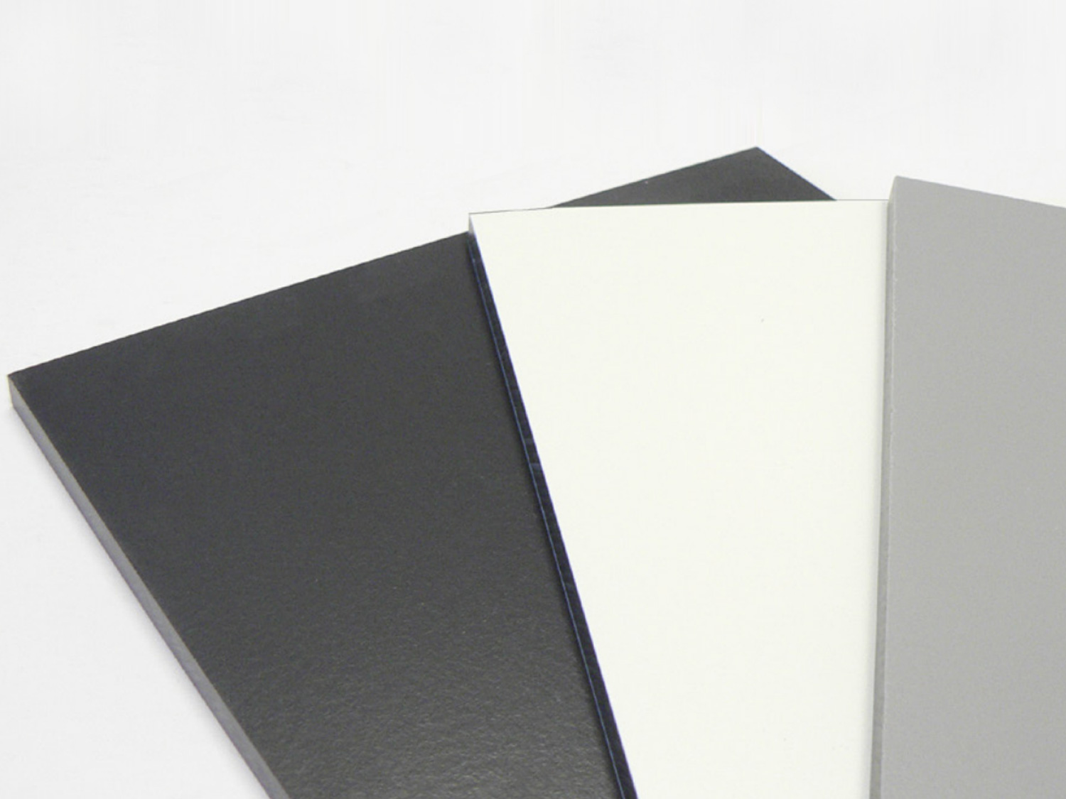 Eine Aluverbundplatte besteht aus zwei dünnen Aluminiumdeckschichten, die einen Kern aus Kunststoff (meist Polyethylen) umschließen. Diese sogenannte Sandwichstruktur vereint die Vorteile beider Materialien: