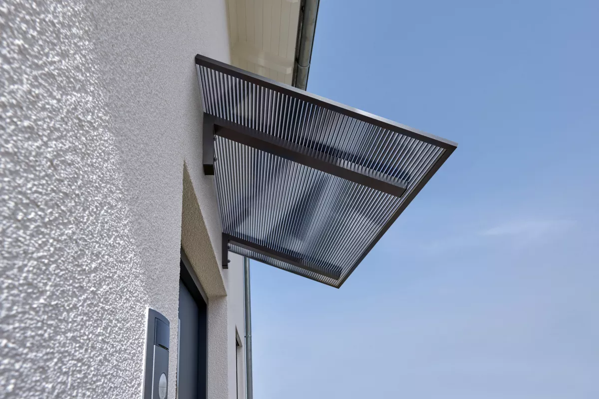 Die hochwertige Verarbeitung sorgt für Langlebigkeit und dauerhafte Formstabilität – ideal als Überdachung für die Haustür oder als dezente Lösung für Nebeneingänge.