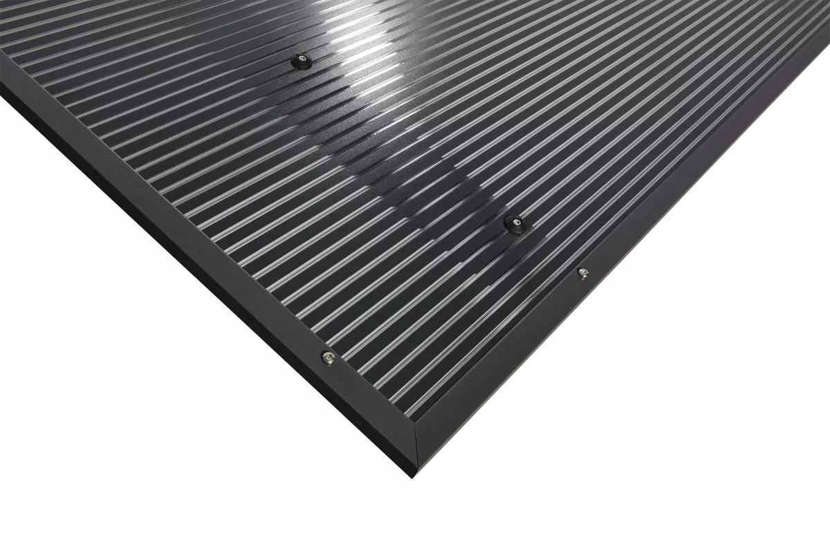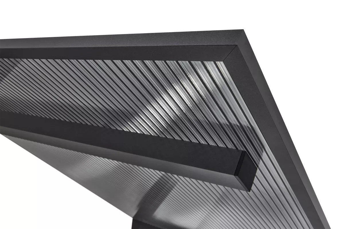 Abdeckung: 16 mm klar/anthrazit gestreift (Zebrablatte) . Die 16 mm Ausführung mit gestreifter Optik sorgt nicht nur für ein modernes Erscheinungsbild, sondern bietet gleichzeitig eine angenehme Abschattung.